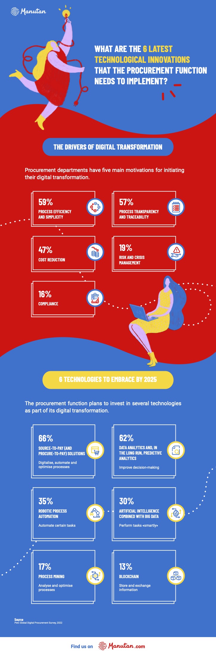Procurement departments have a clearly stated ambition for using technological innovations: To boost their performance so they can contribute to their company’s growth. Whatever the technological innovations (Source-to-Pay, data analytics, robotic process automation, etc.), the bottom line is always about saving time, energy and resources.