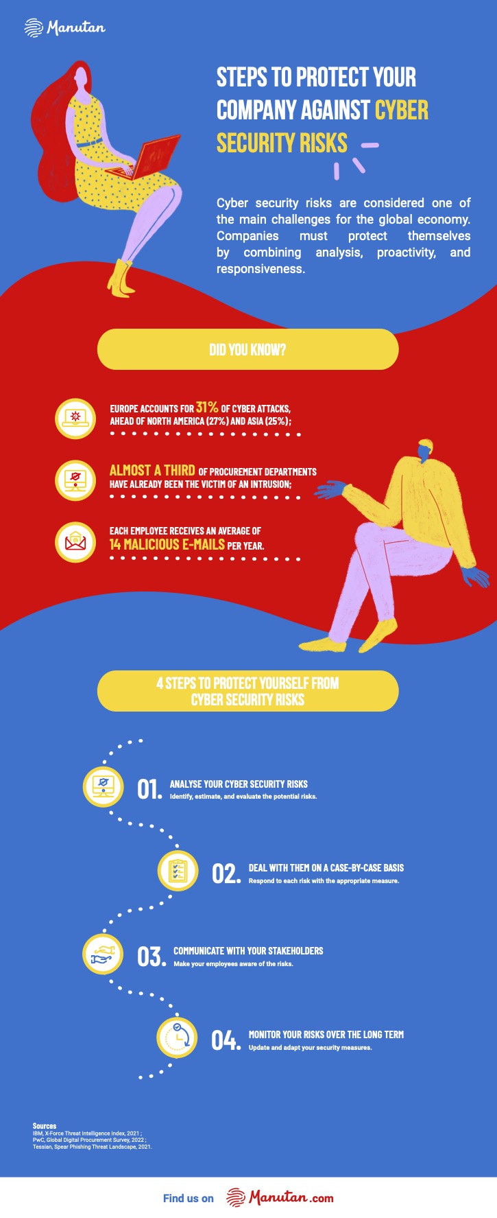 Cyber security risks are considered one of the main challenges for the global economy, regardless of the sector of activity. With the health crisis, cyber attacks have multiplied exponentially, resulting in an unprecedented level of cyber security risks to IT systems. The consequences are varied, ranging from loss of data to supply chain disruption, but all of them generally entail major costs. It is up to business leaders to protect their assets, including sensitive data and their brand image. Today, all businesses are affected by cyber security risks and the procurement function is no exception.