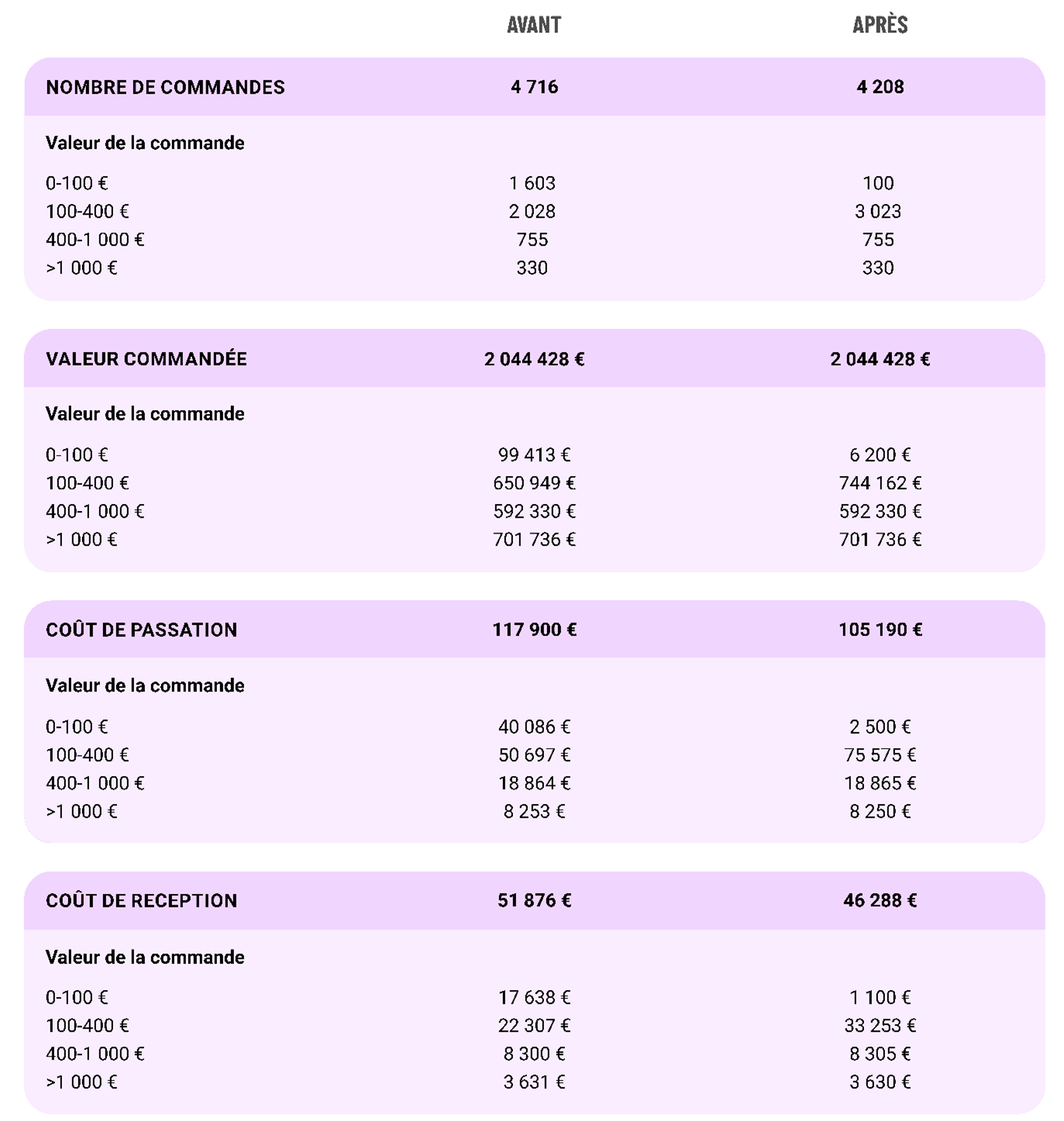 Dans le cas présent, l’entreprise a été accompagnée par son fournisseur partenaire en se fondant sur les données de consommation d’une année. Grâce à cette méthode, les deux partenaires ont identifié trois principaux leviers d’optimisation des achats à actionner.