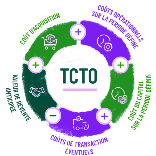 Le TCTO reprend les mêmes composantes que le TCO, en y ajoutant des éléments associés à la durée d’utilisation et la revente.