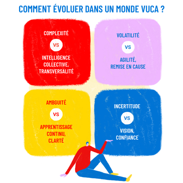 De nos jours, les organisations sont confrontées à des changements de plus en plus dynamiques et imprévisibles. C’est tout le concept que l’on retrouve derrière l’acronyme VUCA : volatil, incertain, complexe et ambigu (en anglais : volatility, uncertainty, complexity et ambiguity). Pour naviguer avec succès dans un tel environnement, les entreprises doivent repenser leur approche globale. Agilité, ouverture et résilience sont les mots d’ordre de cette nouvelle réalité.