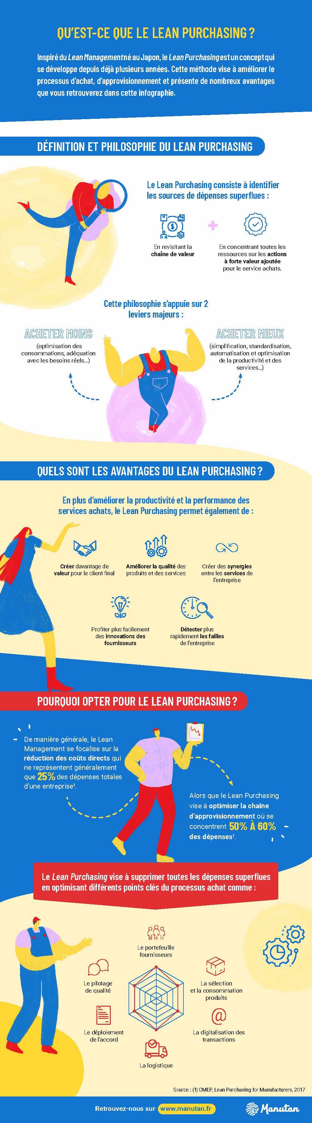 Le Lean Purchasing, inspiré du Lean Management, n’est pas un concept nouveau. Vous en entendez sûrement parler depuis déjà quelques années d’ailleurs, mais en avez-vous compris l’essentiel ? Retour sur les fondements, la définition et les bénéfices qu’offre cette méthode bien connue en infographie.