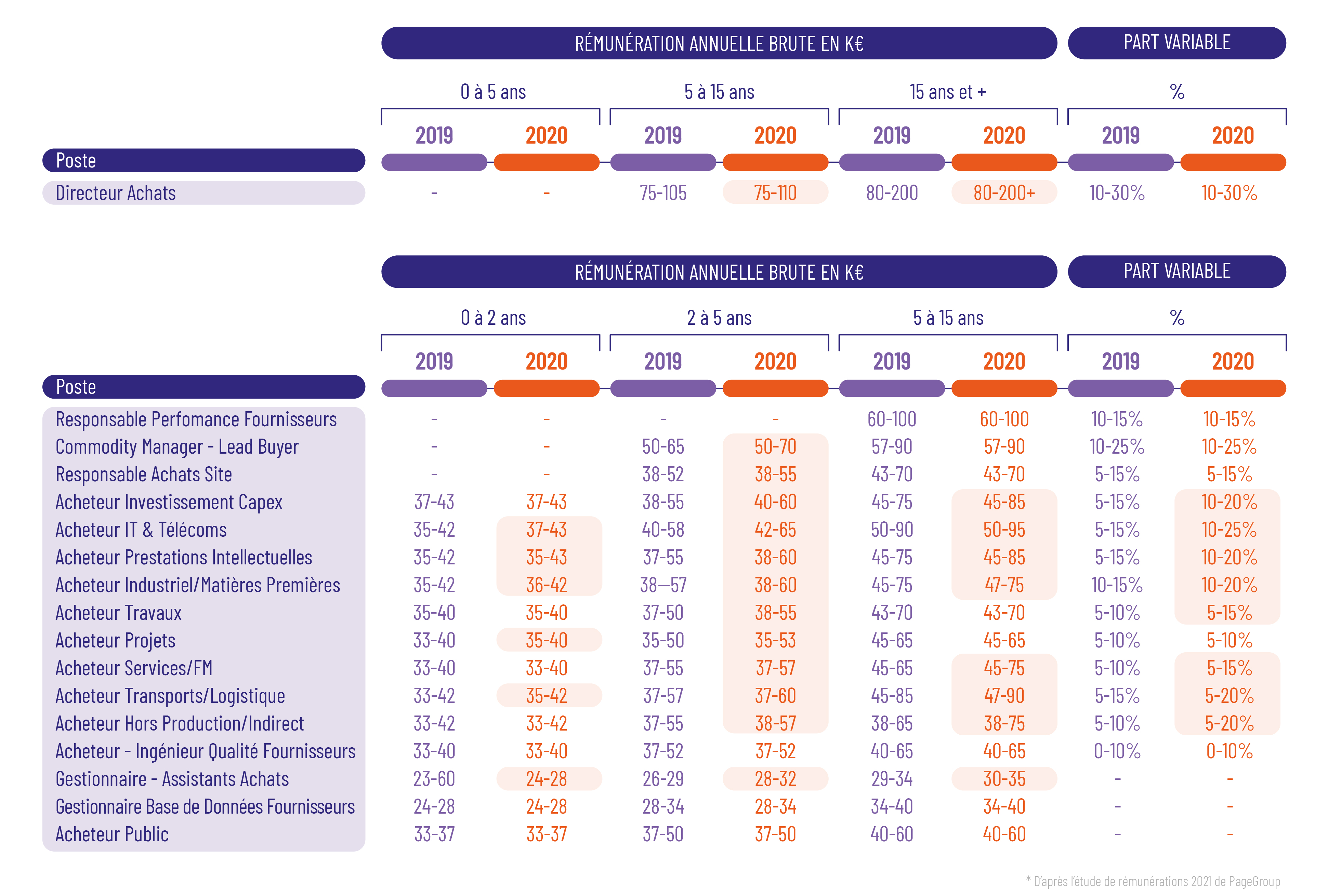 En revanche, certains métiers stagnent sur le sujet salarial. Il s’agit principalement de l’acheteur - ingénieur qualité fournisseurs, du gestionnaire base de données fournisseurs et de l’acheteur public.